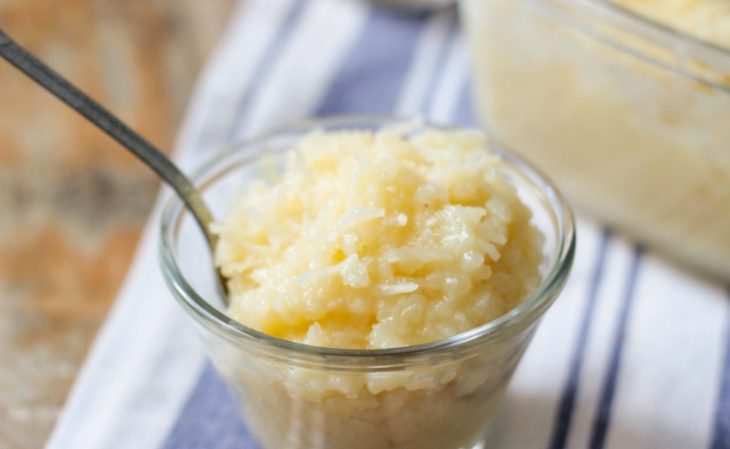 Se você está procurando por uma receita sem leite e sem derivados, já encontrou. Essa opção é perfeita para os intolerantes à lactose e para os veganos. Aqui você deve usar coco ralado fresco, açúcar e uma pitada de sal, que irá realçar o sabor doce.