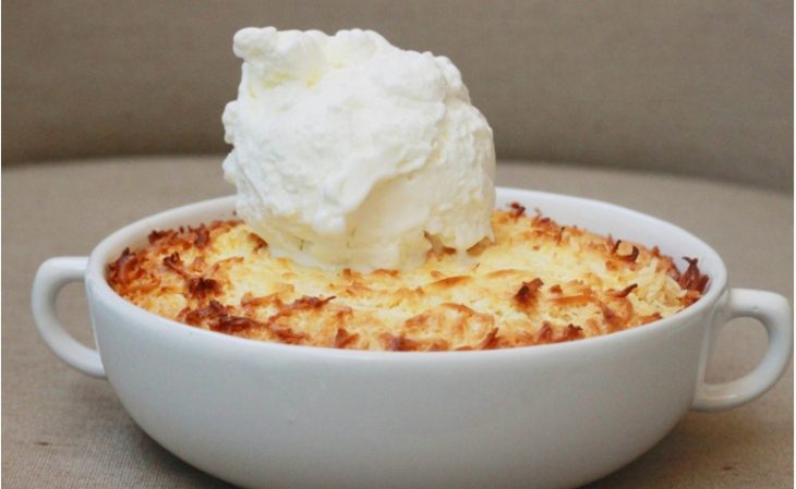 Essa sobremesa tem uma apresentação linda e sofisticada. Ela é perfeita para ser servida em eventos especiais. Para saborear essa delícia, você irá utilizar, além do leite condensado e do coco ralado, ovos e margarina. A dica para essa receita é servir a sua cocada com uma dose generosa de chantilly por cima.