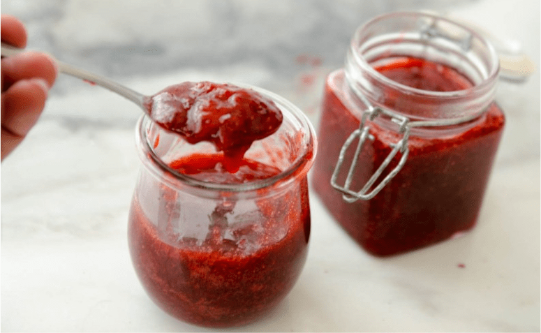 31. Geleia de morango: com apenas três ingredientes, esta receita de geleia possui apenas um passo para preparo: mexer. Pode ser saboreada individualmente ou servida como acompanhamento em torradas, pães e biscoitos.