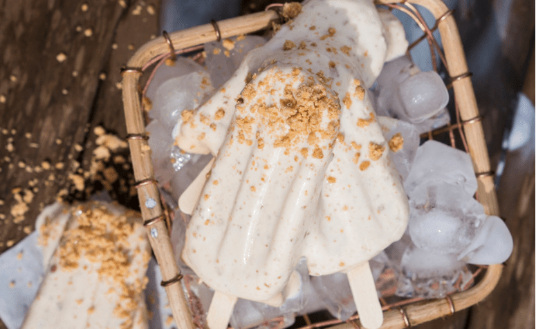32. Picolé de maracujá: sabemos que sempre é possível inovar e sair da rotina na cozinha e desta vez a inovação chegou ao conhecido picolé. Além de refrescante é delicioso e a farofinha de paçoca realça ainda mais o sabor das frutas. Sendo assim, é uma opção saudável para agradar adultos e crianças.