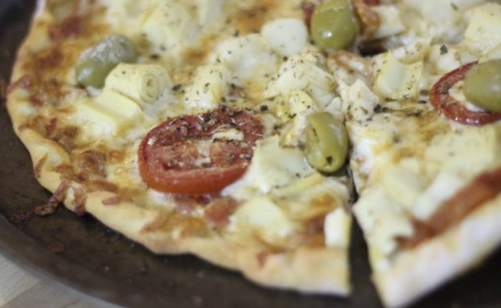 Quem é vegano vai adorar essa versão de massa de pizza que não leva ingredientes de origem animal – e ainda é feita na frigideira! Então lápis e papel na mão para anotar os ingredientes que compõem essa delícia: farinha de trigo, sal, óleo e água. O resultado final vai surpreender todo mundo!