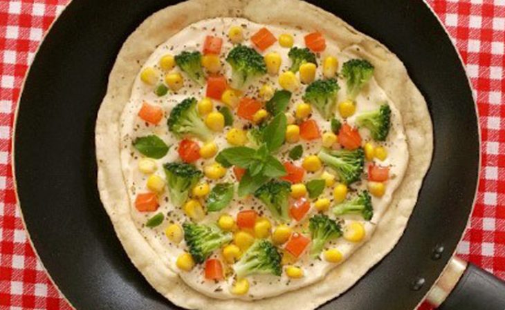 Praticidade é sinônimo para essa receita. Aqui, a massa da pizza é feita na frigideira mesmo, ou seja, não precisa ir ao forno. O restante da montagem também é feita na frigideira e aqui você pode soltar a sua imaginação e usar os seus ingredientes preferidos para rechear: desde salgados até doces!