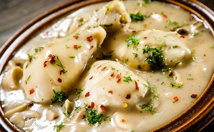 Para obter uma carne bem macia e suculenta, você pode querer testar essa receita em casa. Aqui, um frango inteiro é cozido com leite, um bom toque de temperos, batata e bacon. Tudo isso é colocado em uma panela que deve ficar no forno médio por aproximadamente 1 hora.