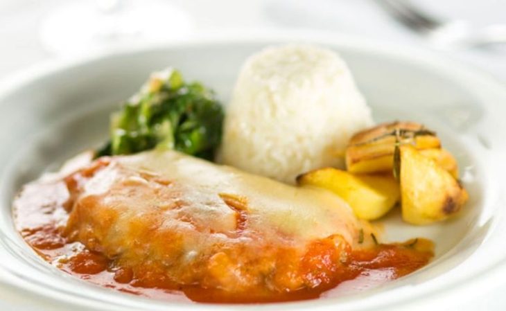 Diferente das receitas tradicionais, o empanado aqui é feito com amaranto em flocos ao invés de farinha. Depois de fritar, basta colocar em uma assadeira, acrescentar molho de tomate e mussarela, levar ao forno e servir esse prato super gostoso de filé à parmegiana.