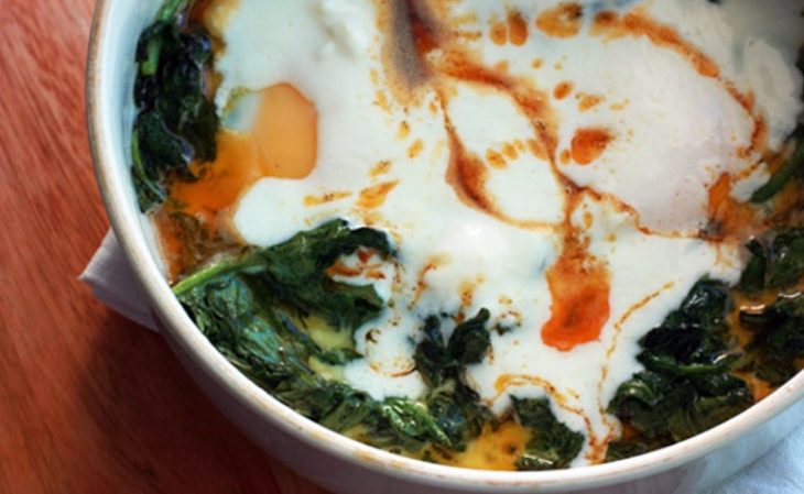 10. Ovos assados com rúcula, iogurte e pimenta-caiena