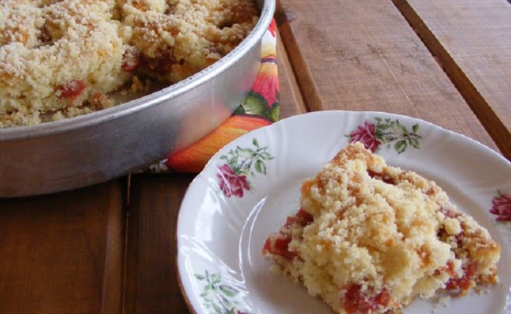 Sem farofa, essa é uma cuca tem como destaque o gostinho de frutas, que fica por conta da goiabada e da banana. Além disso, elas ainda ganham um toque de canela em pó, o que faz com que só de sentir o cheiro, você já tenha vontade de correr para cozinha experimentar um pedaço.
