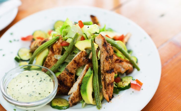 12. Salada de frango com molho iogurte: uma forma mais saudável e fresquinha de trazer cremosidade ao preparo da salada é fazer um molho com iogurte: basta misturar um pouco da bebida láctea com limão e, depois, colocar sobre a alface, a acelga, a cenoura e o peito de frango.